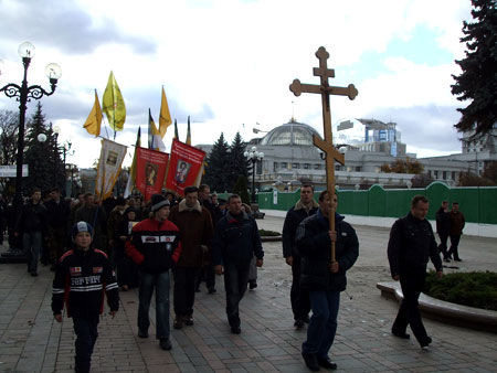 Поэтому эти радикальные организации решили направить свою агрессивность, которую они не скрывали даже в Киевской госадминистрации, на Православных верующих Украинской Православной Церкви, находящейся в каноническом единстве с Русской Православной Церковью. Лидеры ультранационалистических организаций нагло потребовали, чтобы на Крестном ходе не было никакой символики, которая не в их вкусе, например, черно-злато-белых флагов, которые, по словам предводителя партии «Свобода» Андрея Михника, у них почему-то ассоциируется с некоей российской оккупацией украинской территории.