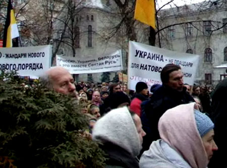 На вече было принято заявление против втягивания Украины в НАТО и решено провести следующее Всеукраинское антинатовское православно-патриотическое шествие в Киеве 20 марта с.г.