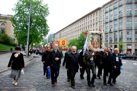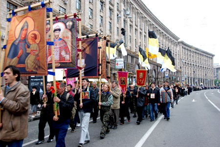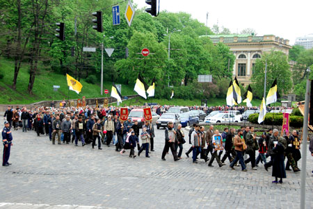 Из Киева Крестный ход вышел 29 апреля в количестве около 3 тысяч человек. По просьбе киевлян прошли весь центр города, ул. Крещатик, обошли вокруг Верховной Рады, Кабмина, Администрацию Президента, где встречали внешних врагов нашего Отечества - Буша, Олбрайт, Клинтона, Элтона Джона и других, им же нет числа. Где ежедневно оскверняют нашу землю внутренние «запроданци» - Ющенко, Тимошенко, Турчинов, Ехануров, Каскив, Тягнибок, Огрызко, воины ОУН УПА и другие предатели нашей Родины, пресмыкающиеся перед врагами Святой Киевской Руси.