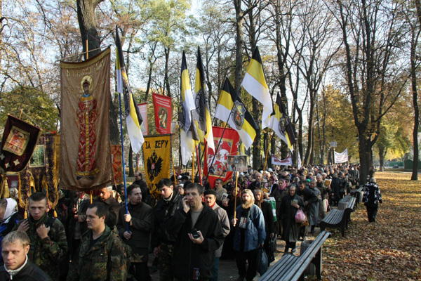 Слава Богу, все же Казачий Оплот, ранее входивший в структуру Селиванова (Партия Регионов), а теперь независымый, встал на пути у нациков. Ребята тренируются в лесах и на стрельбище, но тут было действительно боевая ситуация. То, что ни одно знамя Союза Русского Народа не было попрано - в этом и их огромная заслуга. А нацики показали себя ничтожными трусами, напав на Сергея в метро (!), а на также уже после КХ напав на пятерых оплотовцев группой в 20 человек. На такие подвиги их вдохновляет пример Мазепы, ну да и постигнет их его участь...