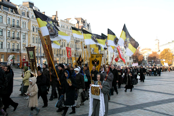Среди участников шествия, которое стартовало из Киево-Печерской Лавры, были преимущественно пожилые люди, верующие. Всего акция собрала примерно 200 человек.