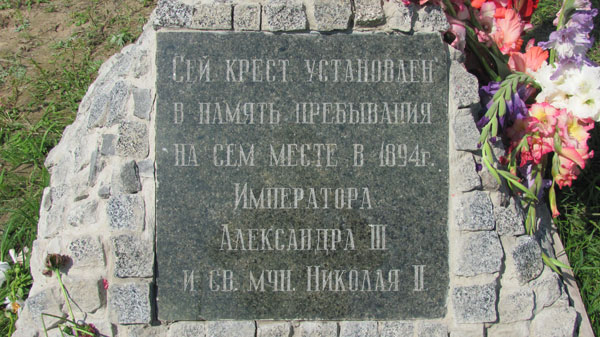 «Обстоятельства, вызвавшие сооружение памятника были следующие: в половине сентября 1894 года Его Величество Государь Император Александр Александрович, изволил следовать из Спалы в Крым.