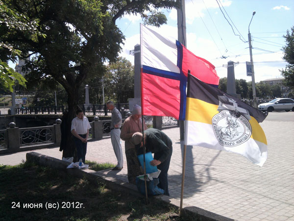 К этому дню Харьковскими союзниками была подготовлена листовка, выпущенная тиражом несколько сотен экземпляров, в которой изложена история возникновения и становления гербовых цветов Русского знамени, а также освещены появившиеся не так давно в монархической среде проблемы, возникающие в связи с разномыслием по поводу порядка размещения цветов на Русском флаге.