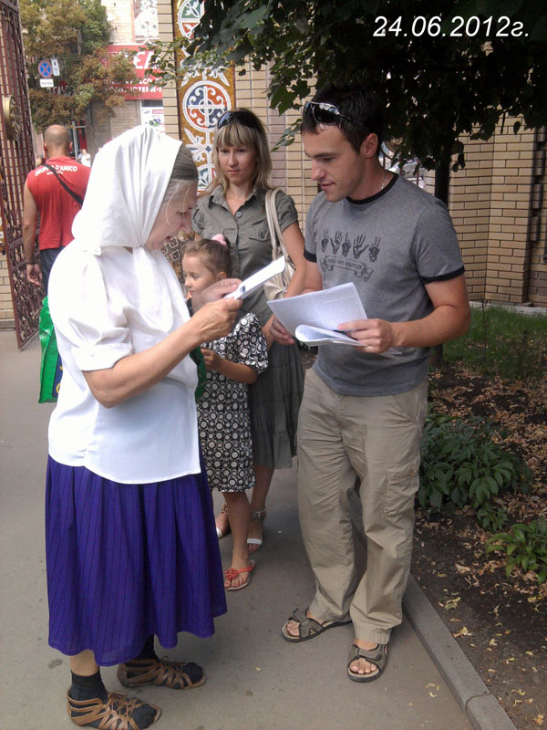 В воскресный день 11/24 июня близ кафедрального Свято-Благовещенского собора города прошел агитационный пост. Активисты ХО СРН знакомили жителей и гостей Харькова с историей праздника, раздавали подготовленные к этому дню материалы, отвечали на многочисленные вопросы заинтересовавшихся этим событием харьковчан. Союзники отвечали так же на вопросы об истории и сегодняшнем дне Союза Русского Народа, шла оживленная мировоззренческая дискуссия. Некоторые из наших гостей приехали специально на этот праздник из области, чтобы встретиться с руководством Харьковского СРН и в братской беседе обсудить волнующие их проблемы настоящего положения нашего Русского Православного монархического движения.