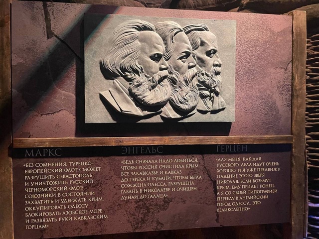 Там есть очень красноречивая экспозиция с цитатами трех знаменитых леваков и русофобов XIX века: Карла Маркса, Фридриха Энгельса и Александра Герцена.