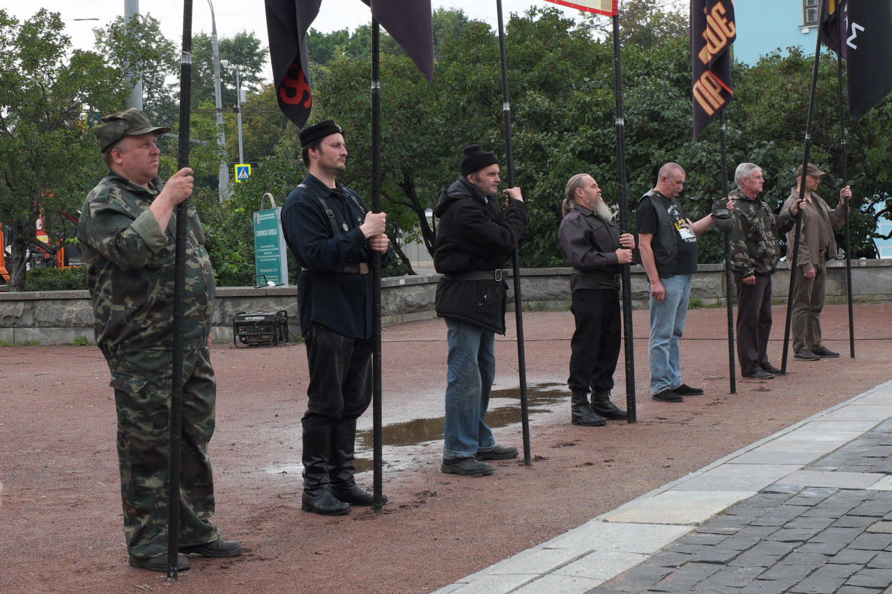 Собравшиеся у памятника Суворову держали иконы, хоругви и плакаты, в т.ч. с надписью: «России нужен Царь!» и портретом Государя Николая II. Дважды над площадью мощно прозвучал русский национальный гимн «Боже, Царя храни!» Читались молитвы. Выступали: священник отец Виктор Кузнецов, глава СХВ В.Н.Осипов (безсменный организатор таких традиционных молитвенных стояний) и его заместитель А.А. Коренев, полковник ГРУ В.В. Квачков, бывший редактор газеты «Я – русский!» А.К. Иванов-Сухаревский, адвокат И.Ю. Чепурная, читал свои стихи поэт Николай Боголюбов. Согласно согласованной с мэрией заявке стояние закончилось ровно в 16-00 и сразу, в ту же минуту хлынул мощный ливень. Словно ждал окончания митинга.